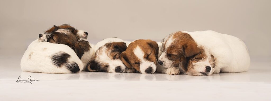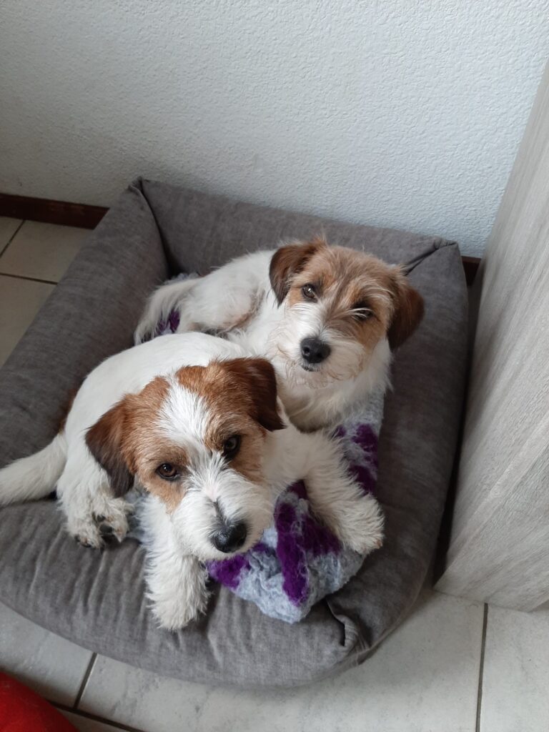 Wij verwachten uit deze combinatie wit bruine en heel misschien ook tricolor ruwharige puppy.s.