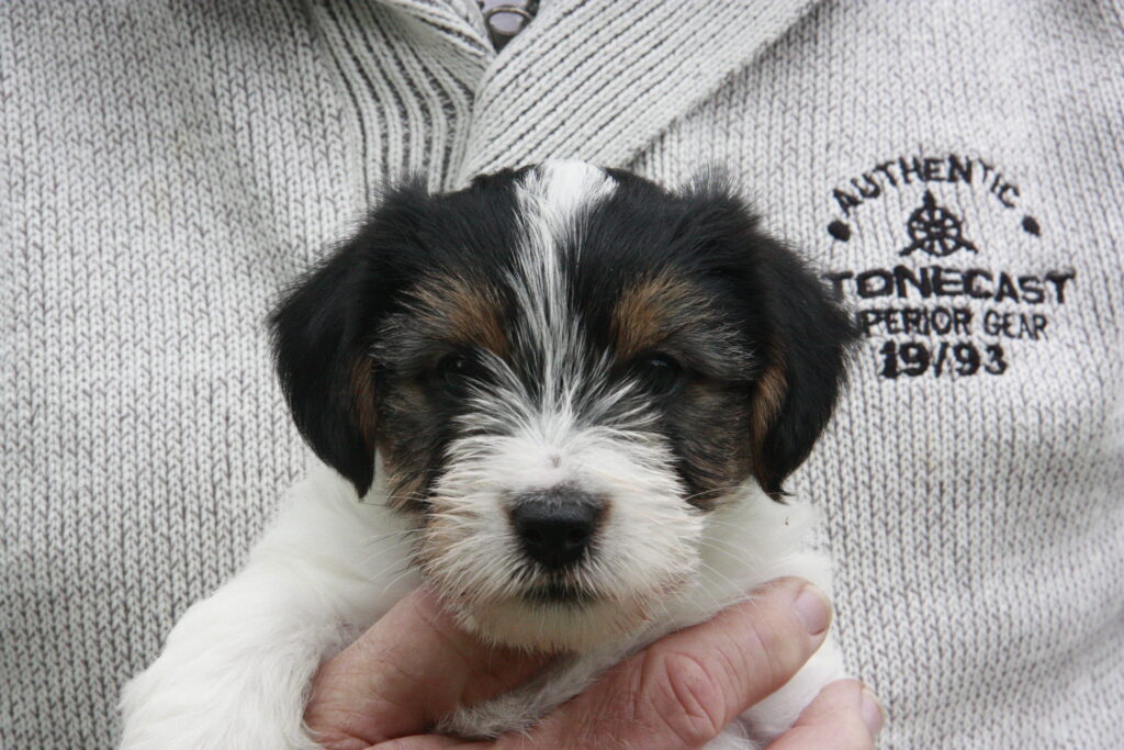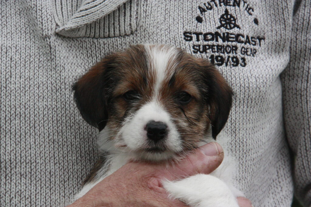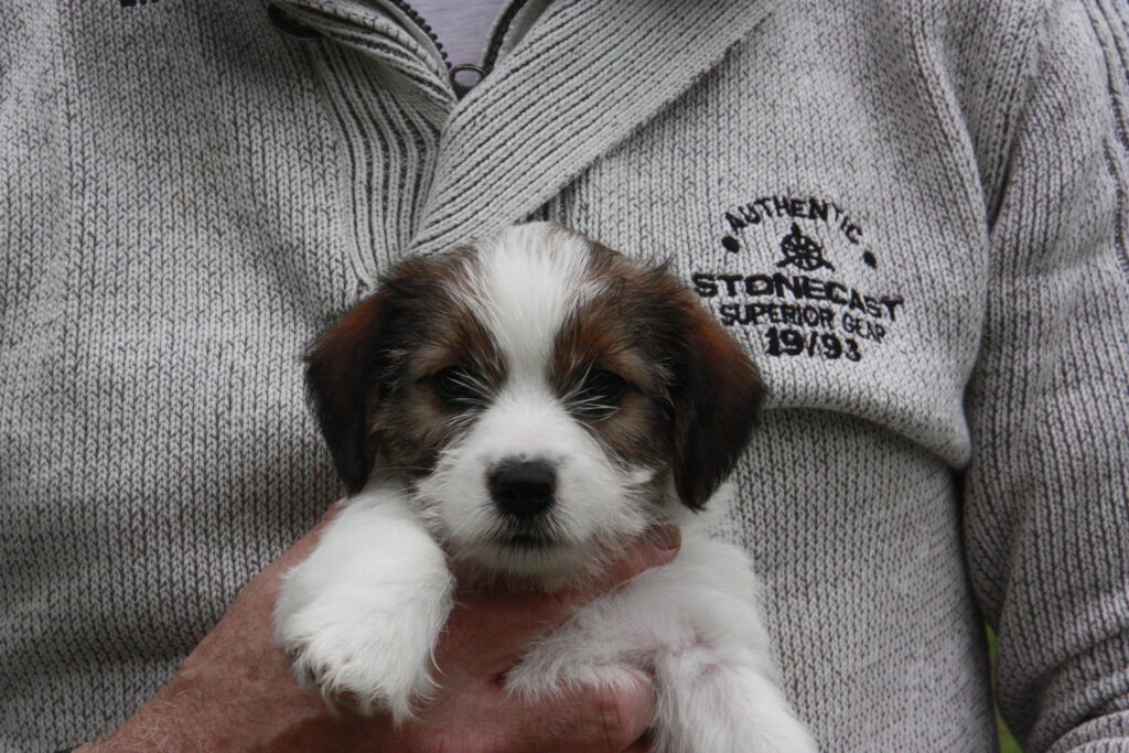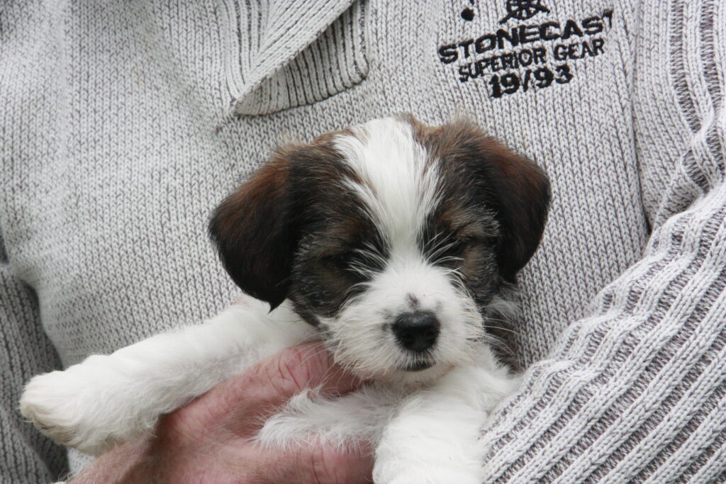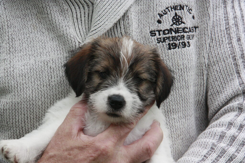 Wij verwachten uit deze combinatie wit bruine en heel misschien ook tricolor ruwharige puppy.s.